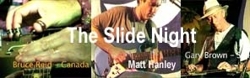| 9) The Slide Night Matt Hanley - Acoustic & Electric Guitars - and his Band Bruce Reid (Canada) - Dobro (all metal) With Barnaby Coman - Guitar Gary Brown (Sydney) - Dobro And Bands: Sophie Raymond & Kata Haye (Oklahoma) sitting in Andrew Clermont - Epoch Fiddle Christian Marsh - Harmonica Ronny Rindo - Drums Darryl Walker - Bass Parris Macleod - Piano |